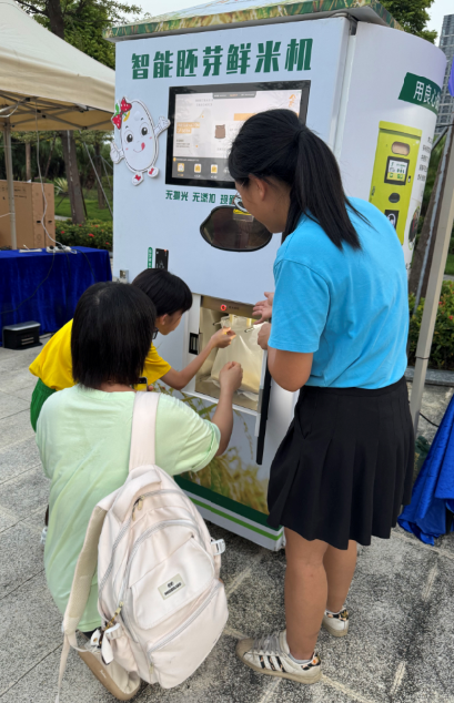 机器储存新鲜稻谷,而非成品米。用户下单后,由25秒到2分钟内完成碾壳去糠,产出带完整胚芽的鲜米,过程透明无中间环节。