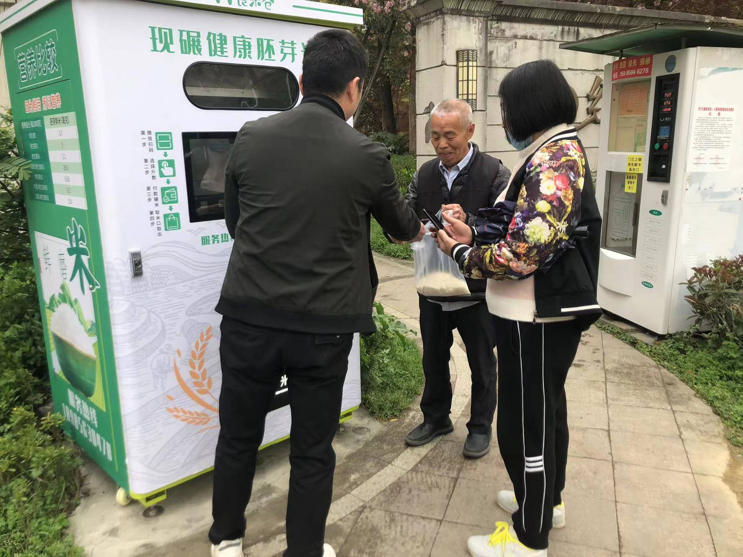 除了现碾胚芽米的提供,东吉良米仓智能碾米机还具备智能化的运营模式。通过扫码或刷卡支付,消费者可以方便快捷地购买到稻谷,并且无需人员看管,实现自助服务。此外,东吉良米仓智能碾米机支持微信、支付宝扫码支付以及刷会员卡支付,满足了不同消费者的支付需求。同时,手机和电脑上的实时监控管理系统,使得运营方能够随时随地监控机器的运行情况,保证了服务的稳定性和质量。